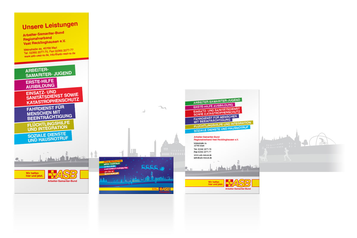 01.02.2018 Für den Arbeiter-Samariter-Bund Vest haben wir eine Gestaltungsbühne gestaltet, die zahlreiche Sehenswürdigkeiten und prägnante Gebäude des Bezirks zeigt. Diese wird auf verschiedenen Print- und Onlinemedien verwendet um den regionalen Bezug zu stärken.